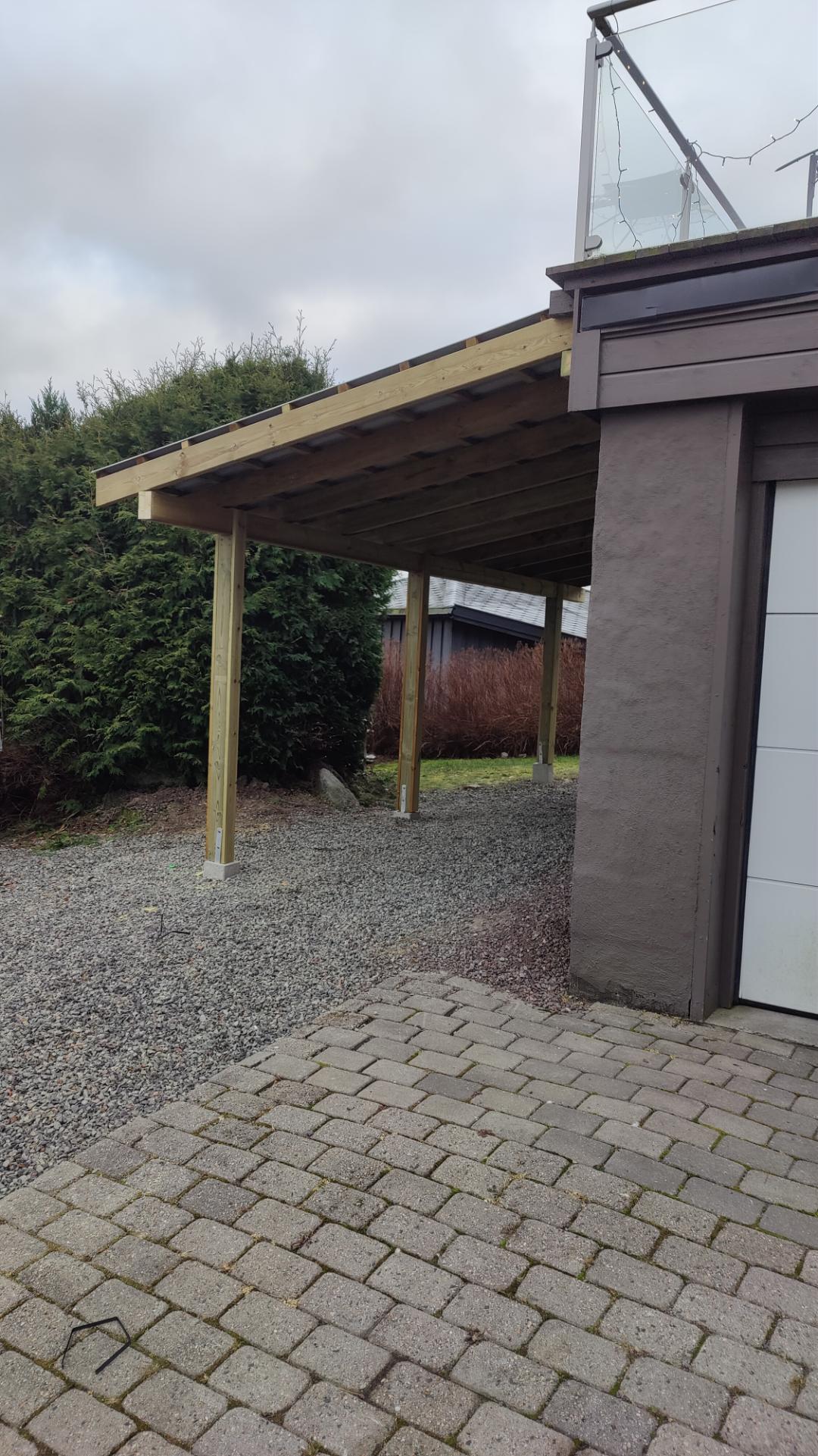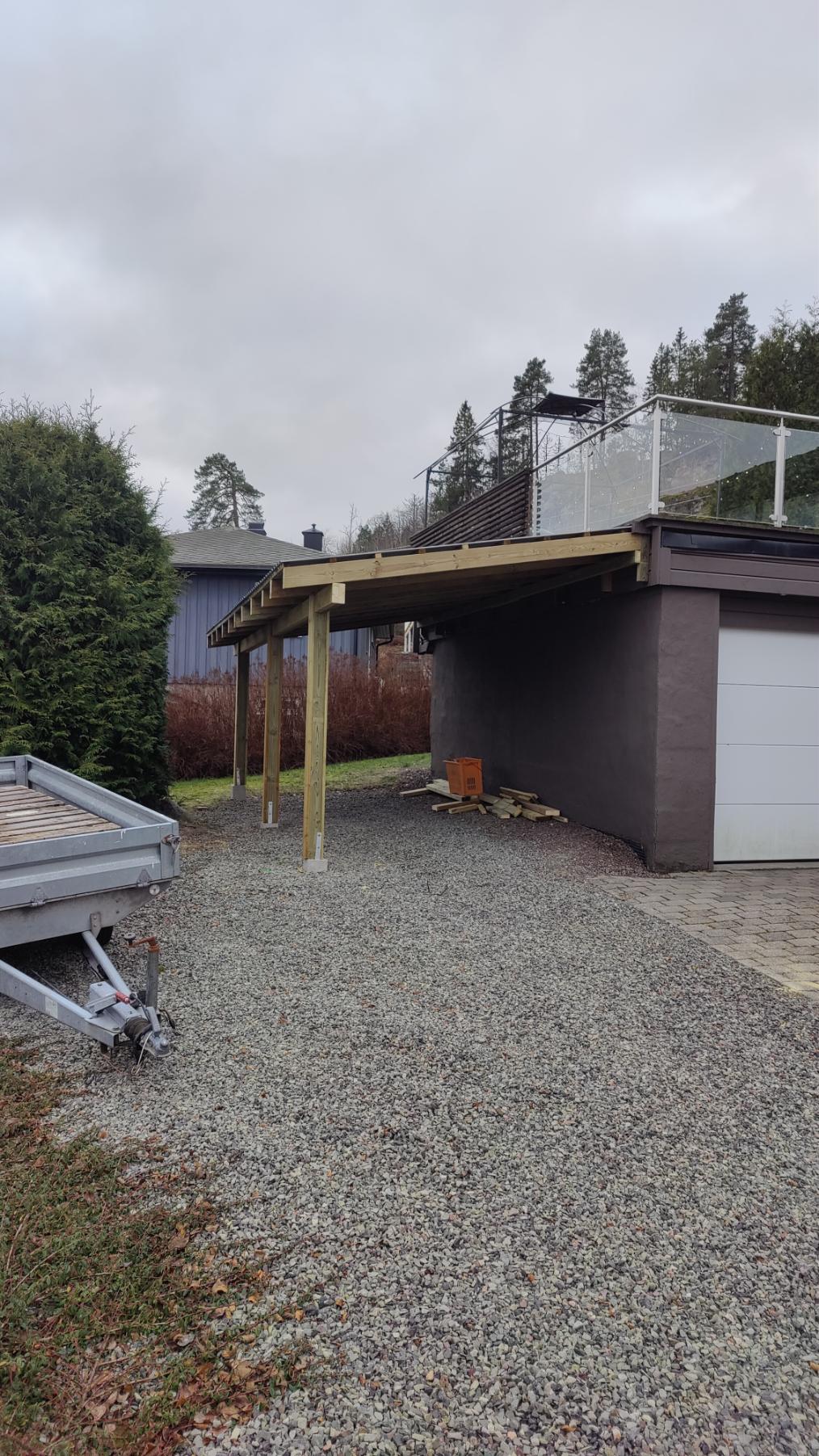 Veranda og overbygd terrasse, sette inn dør i carport til terrasse